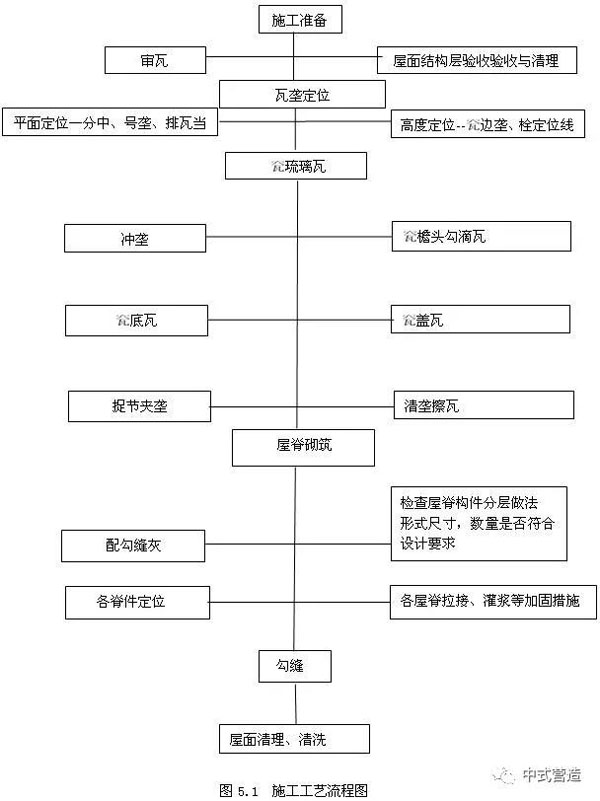 5.2.8 屋面琉璃瓦施工完畢后,清潔瓦面的灰漿,每天在完工部分安裝瓦件及最后的工序后,要用干凈的棉紗將瓦面清理干凈,以保持瓦的清潔及亮度。