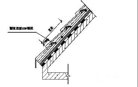 2) 對(duì)30°以上坡屋面采用預(yù)埋銅絲掛瓦條,在基層施工應(yīng)注意檢查,確保銅絲掛瓦條在間距、位置、數(shù)量能滿足要求。